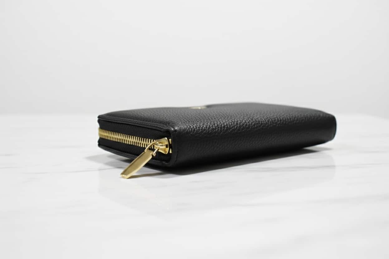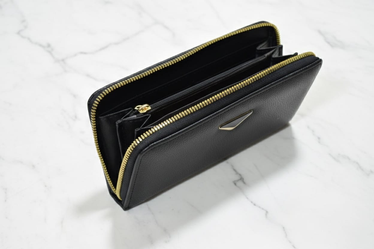 The wrap-around zipper keeps your valuables safe and prevents coins or cards from slipping out. Inside, the wallet offers: