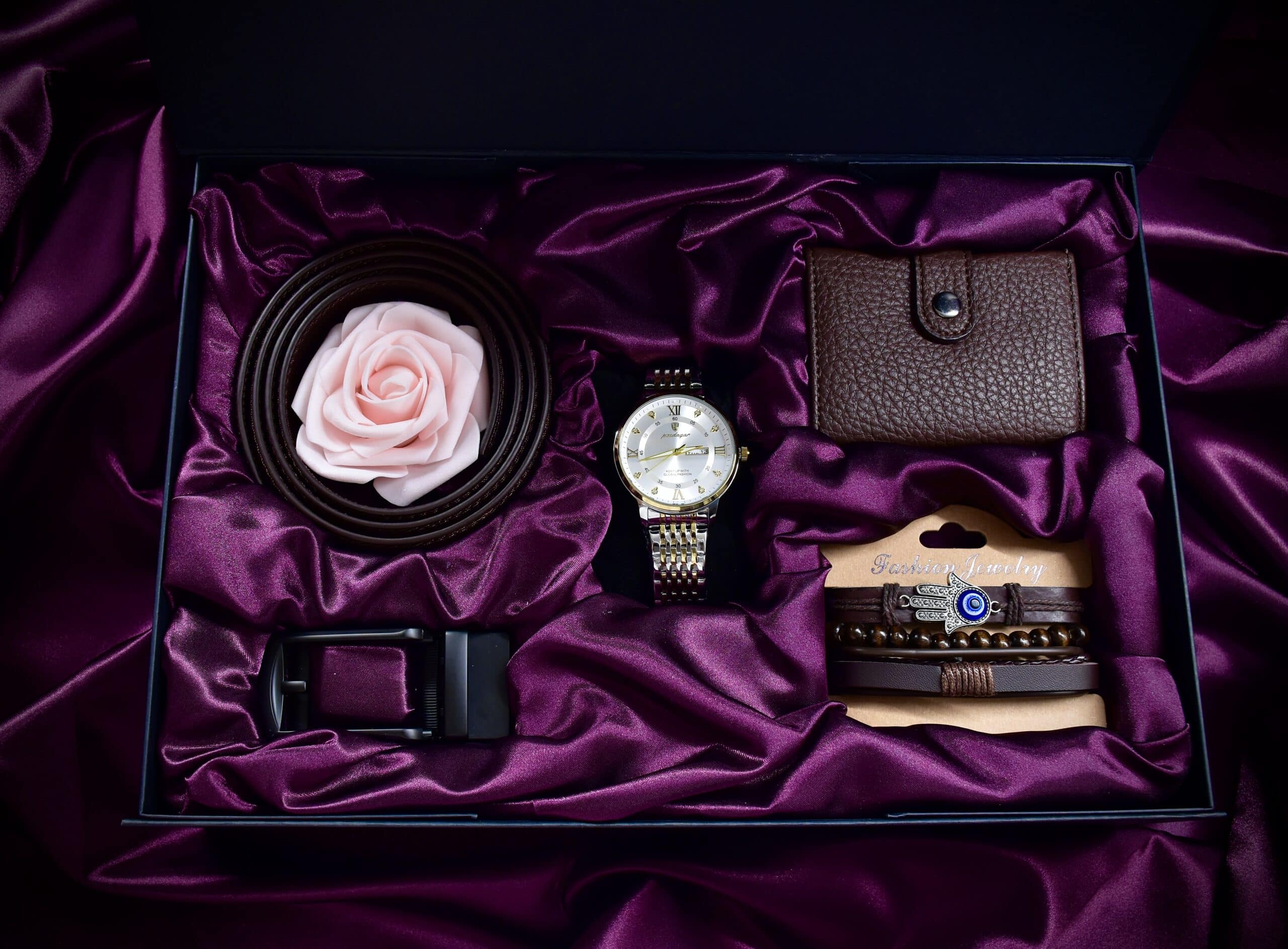 The Gentleman Brown Essentials Set is a curated collection designed for men who value style, confidence, and everyday practicality. This set features a precision watch with Japanese movement, a slim leather wallet, a premium belt, and a coordinated bracelet set. Each piece is crafted to enhance your look while offering a pre-coordinated aesthetic perfect for both business and casual occasions.