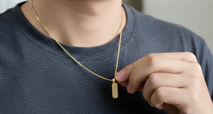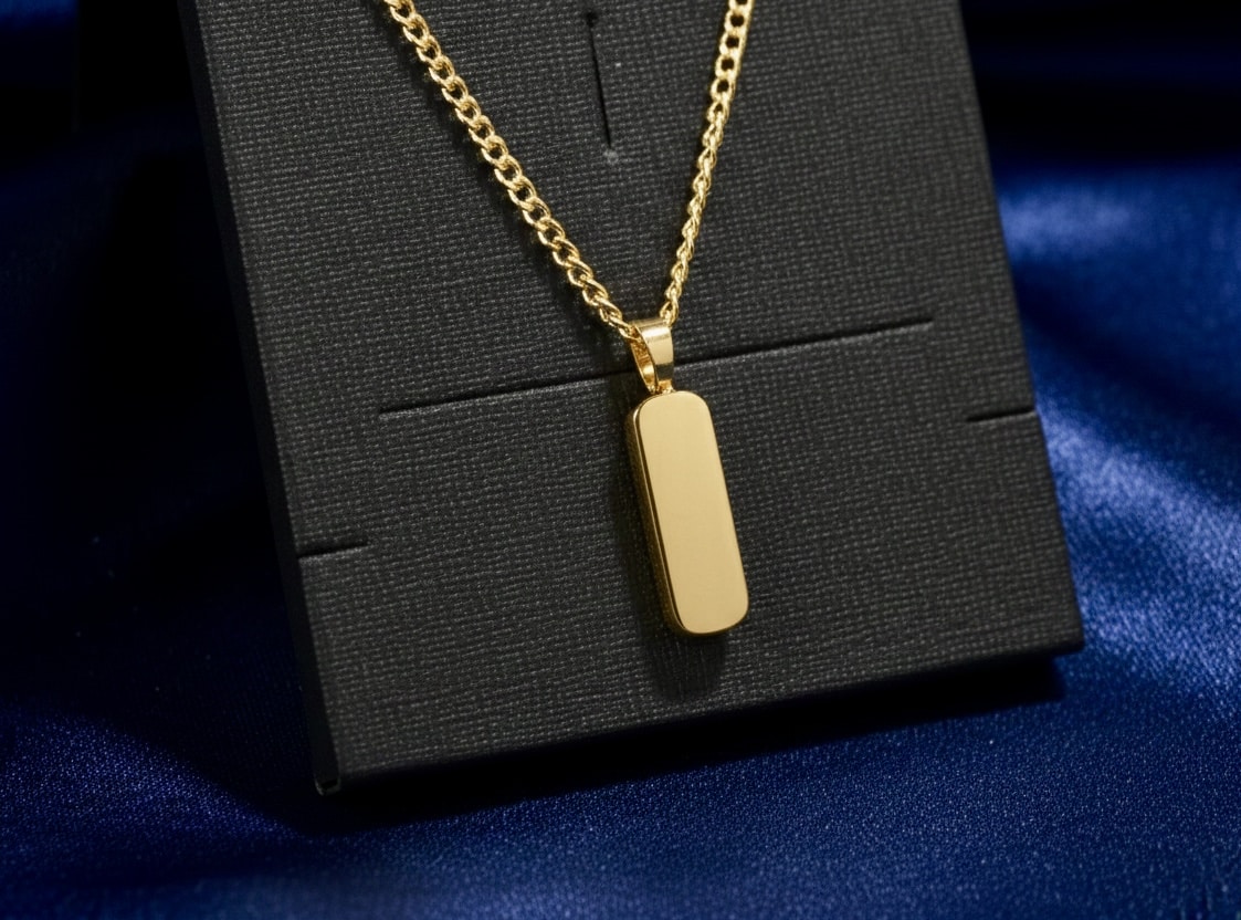 Men’s Rectangular Pendant Necklace: Timeless Style in Gold-Tone