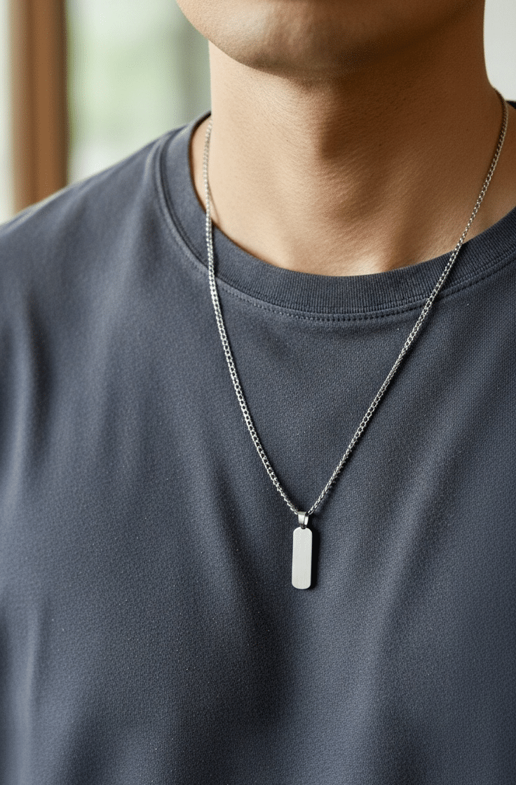 Men’s Rectangular Pendant Necklace: Timeless Style in Silver-Tone